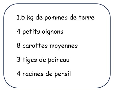 Lorsque la famille revient de patinage l’après-midi, elle doit manger une bonne soupe de pommes de terre pour se réchauffer.