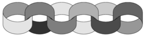 Elle les colle l’une après l’autre pour former des anneaux de manière à ce qu’elles s’accrochent les unes aux autres.